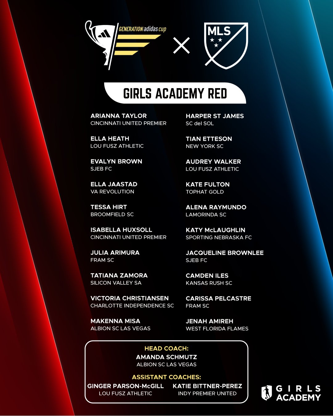 Girls Academy unveils All-Star Team rosters for 2026 Generation Adidas Cup