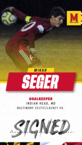 Before Maryland: Played for Henry E. Lackey HS under coach Jonathan Juracko…recorded 223 saves, 12 clean sheets, four PK saves, six goals and 11 assists for the Chargers…named to the 2021 High School All-American Game…2021 Southern Maryland Athletic Conference Player of the Year…2021 Washington Post First-Team All-Metro…2021 All-State Honorable Mention…2021 All-Conference First-Team…led the state of Maryland in saves in 2019….played for Baltimore Celtic under coach Dan Louisignau…called up to the USA U-15 Boys National Team in 2018…son of Billy and Brenda Seger…has four siblings: Jeremiah, Judah, Uriah and Zekeriah.